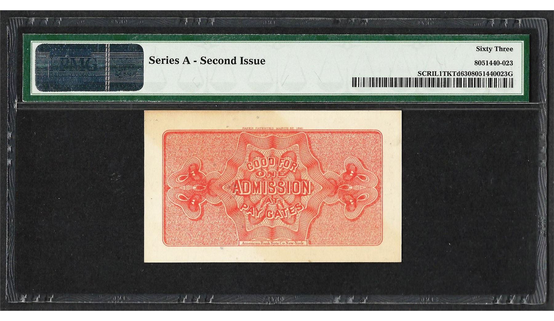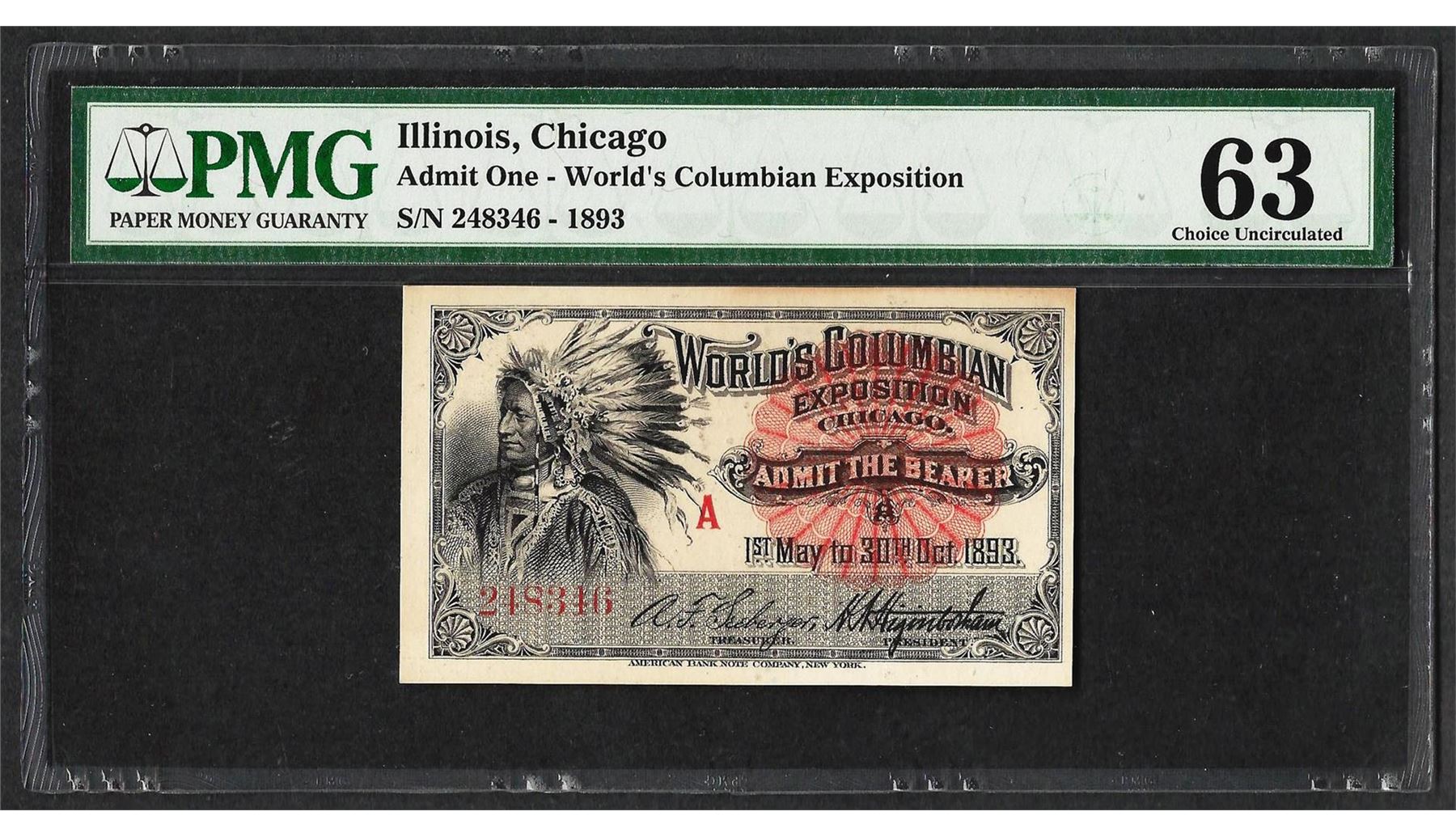 One 1893 World's Columbian Exposition Ticket Indian Chief PMG Choice Uncirculated 63EPQ. PMG Certified.