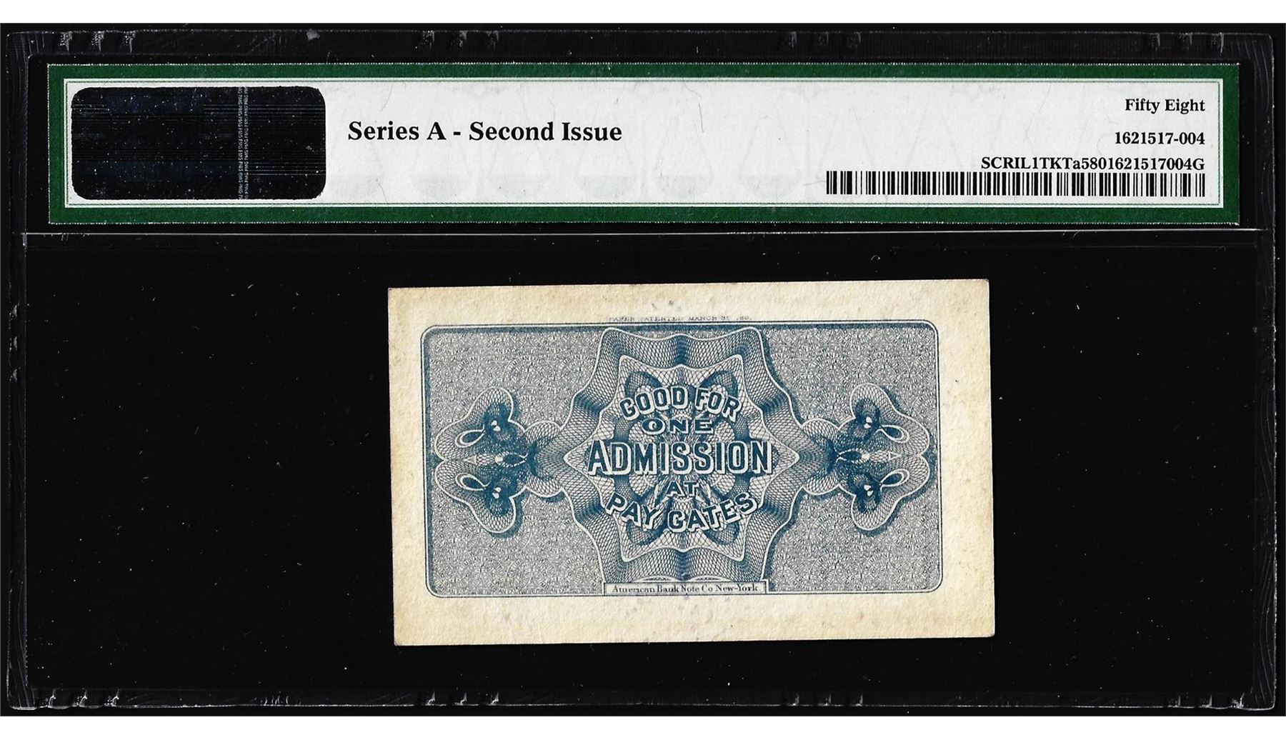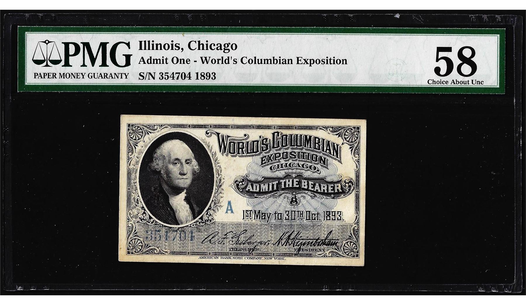 One 1893 World's Columbian Exposition Ticket Washington PMG Choice About Uncirculated 58. PMG Certified.