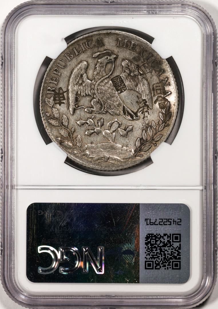 One 1893MO AM Mexico 8 Reales Silver Coin NGC Chopmarked. NGC Certified.