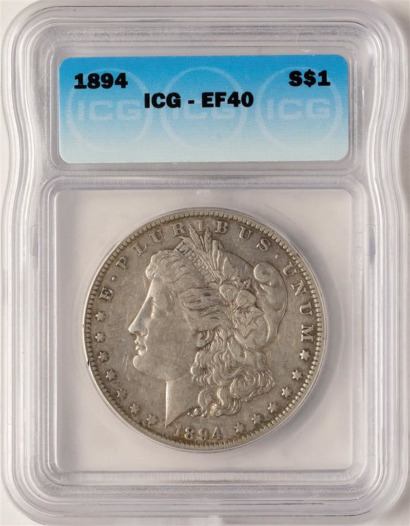 One 1894 $1 Morgan Silver Dollar Coin ICG XF40. ICG Certified.