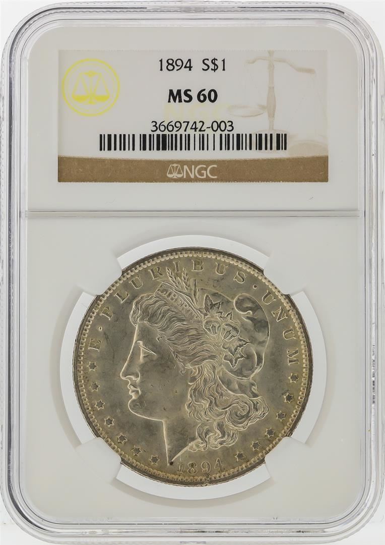 One 1894 $1 Morgan Silver Dollar Coin NGC Graded MS60. NGC Certified.