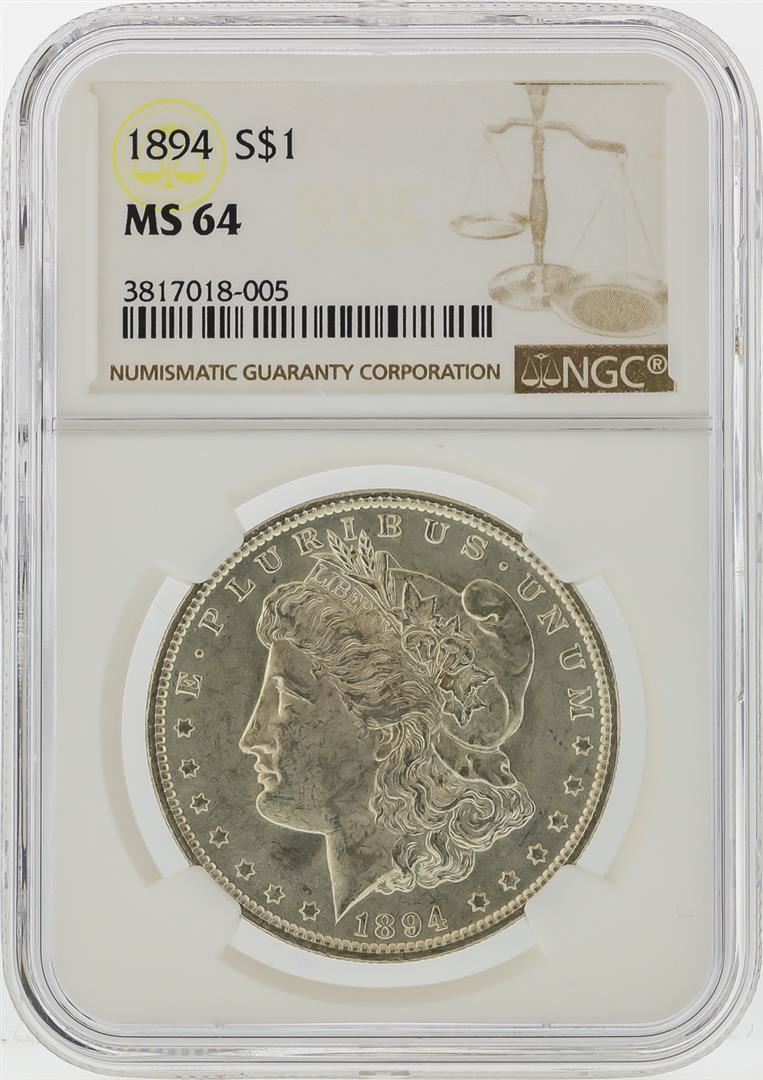 One 1894 $1 Morgan Silver Dollar Coin NGC Graded MS64. NGC Certified.