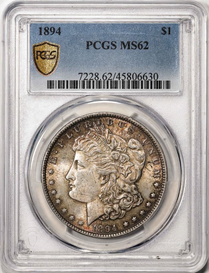One 1894 $1 Morgan Silver Dollar Coin PCGS MS62. PCGS Graded.