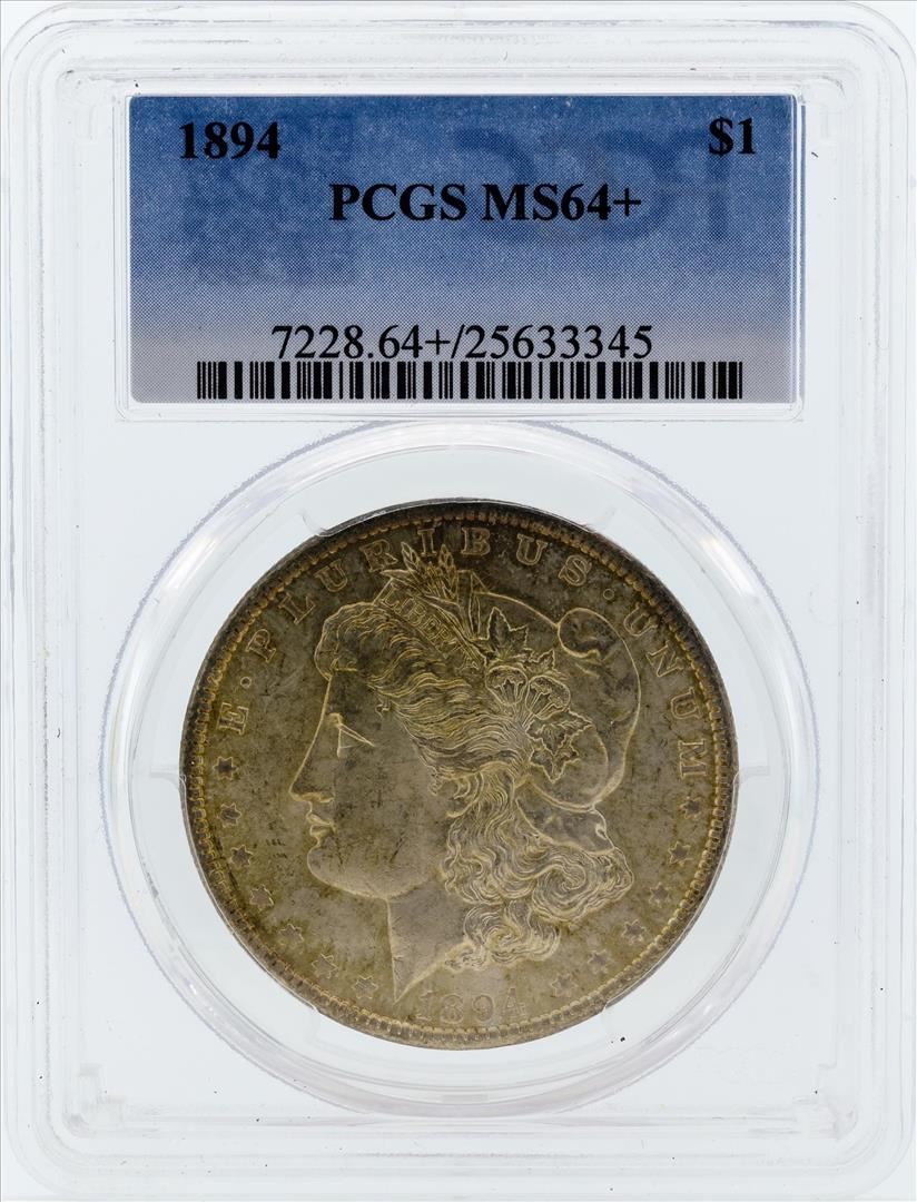 One 1894 $1 Morgan Silver Dollar Coin PCGS MS64+. PCGS Graded.