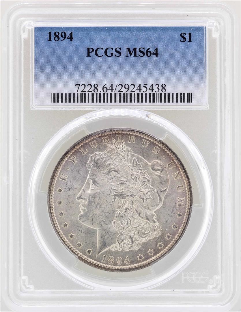 One 1894 $1 Morgan Silver Dollar Coin PCGS MS64. PCGS Graded.