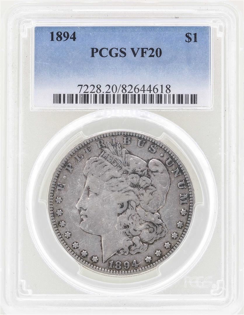 One 1894 $1 Morgan Silver Dollar Coin PCGS VF20. PCGS Graded.
