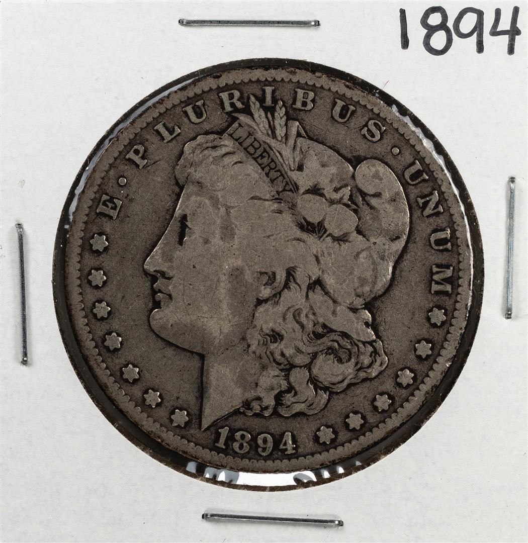 One 1894 $1 Morgan Silver Dollar Coin.