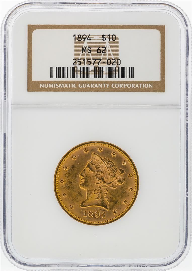 One 1894 $10 Liberty Head Eagle Gold Coin NGC Graded MS62. NGC Certified.