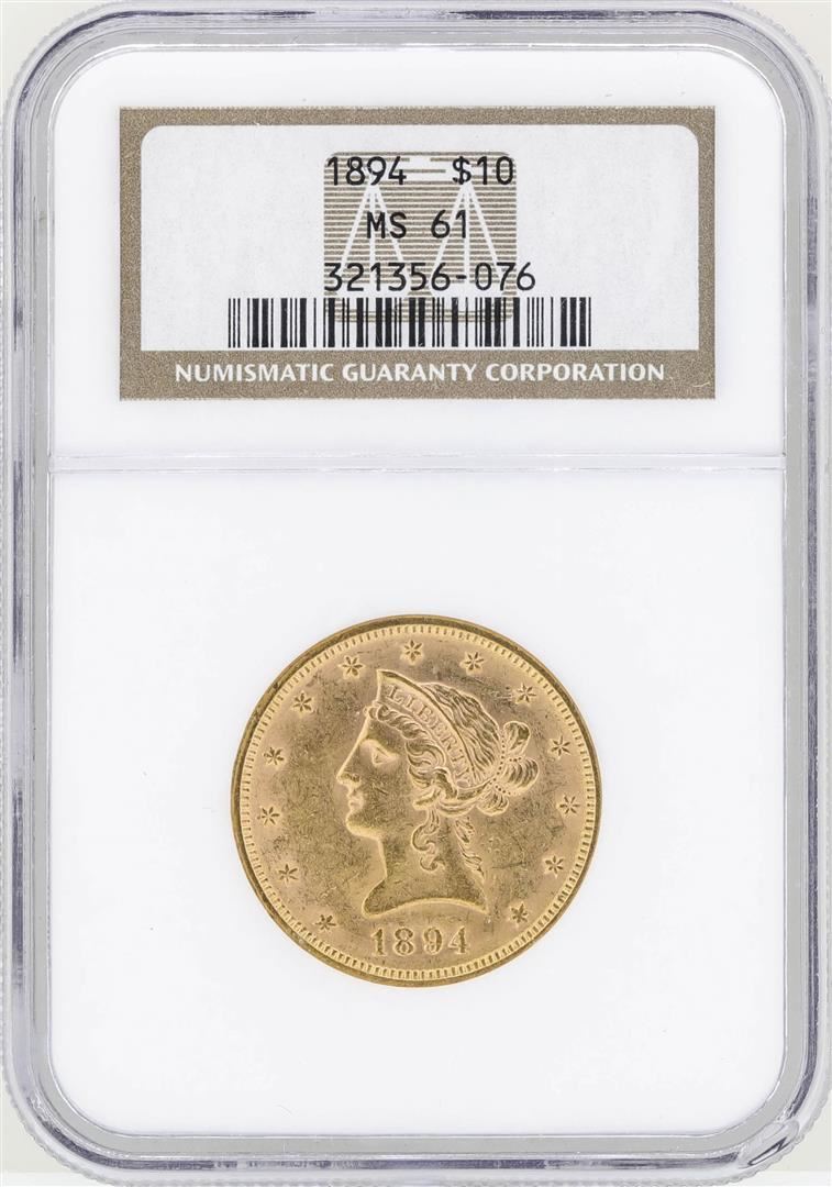 One 1894 $10 Liberty Head Eagle Gold Coin NGC MS61. NGC Certified.