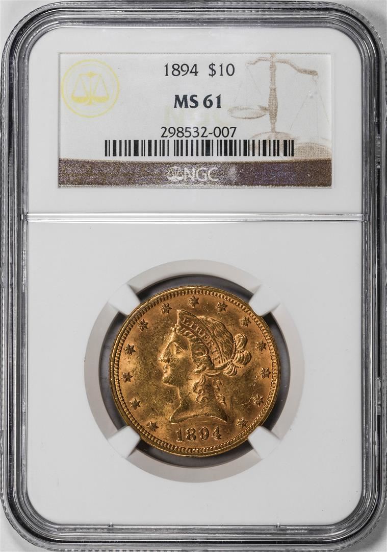 One 1894 $10 Liberty Head Eagle Gold Coin NGC MS61. NGC Certified.
