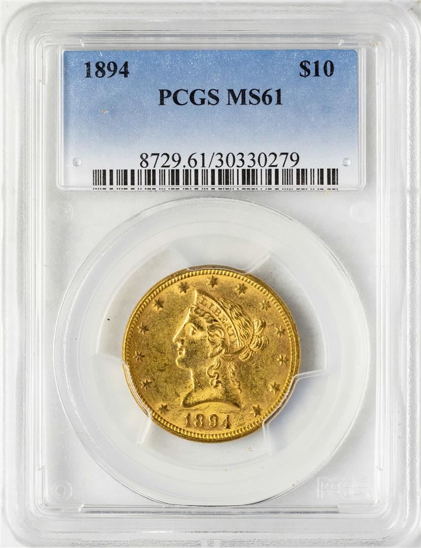 One 1894 $10 Liberty Head Eagle Gold Coin PCGS MS61. PCGS Graded.