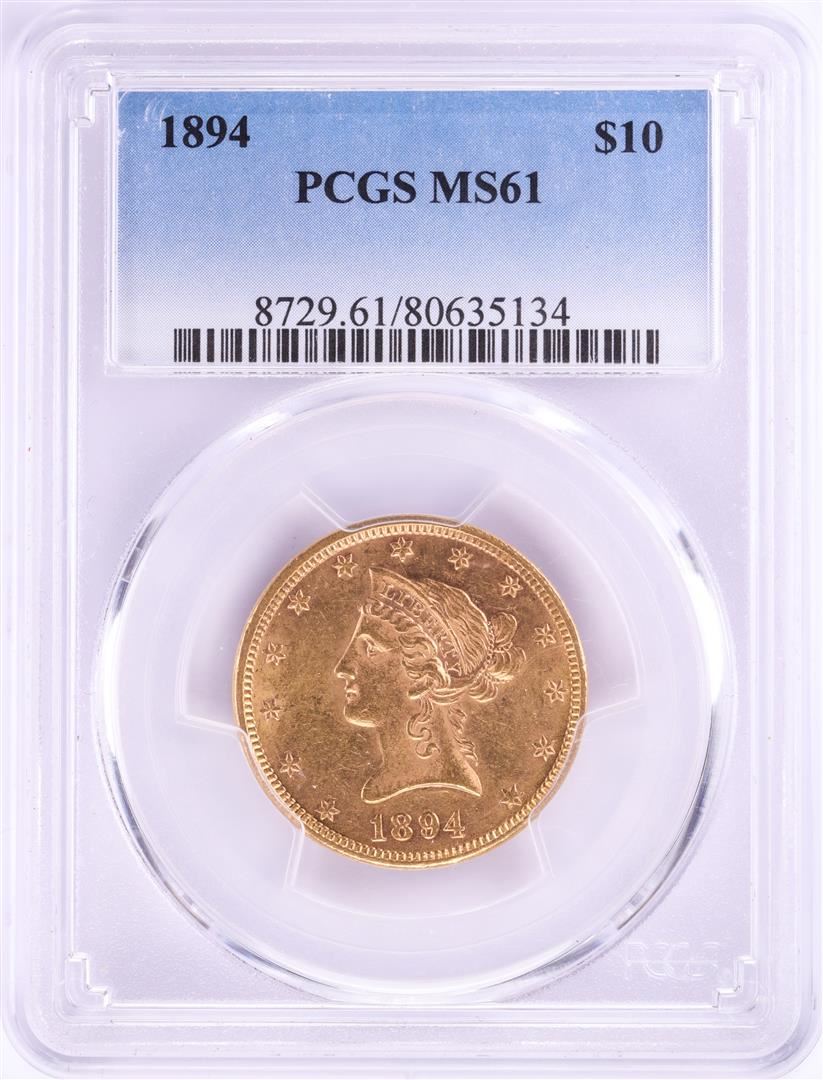 One 1894 $10 Liberty Head Eagle Gold Coin PCGS MS61. PCGS Graded.