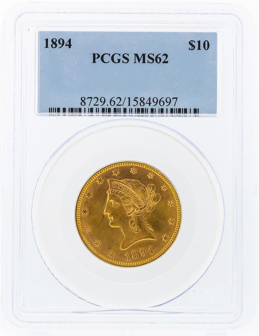 One 1894 $10 Liberty Head Eagle Gold Coin PCGS MS62. PCGS Graded.