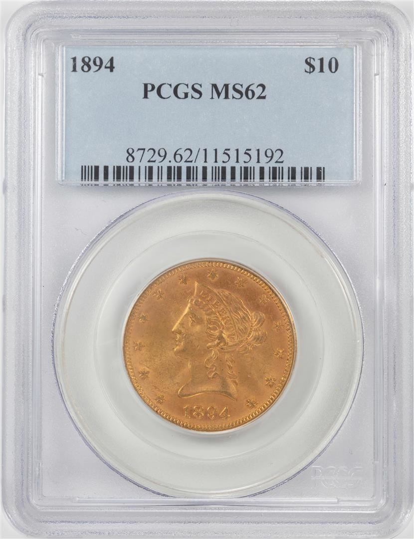 One 1894 $10 Liberty Head Eagle Gold Coin PCGS MS62. PCGS Graded.