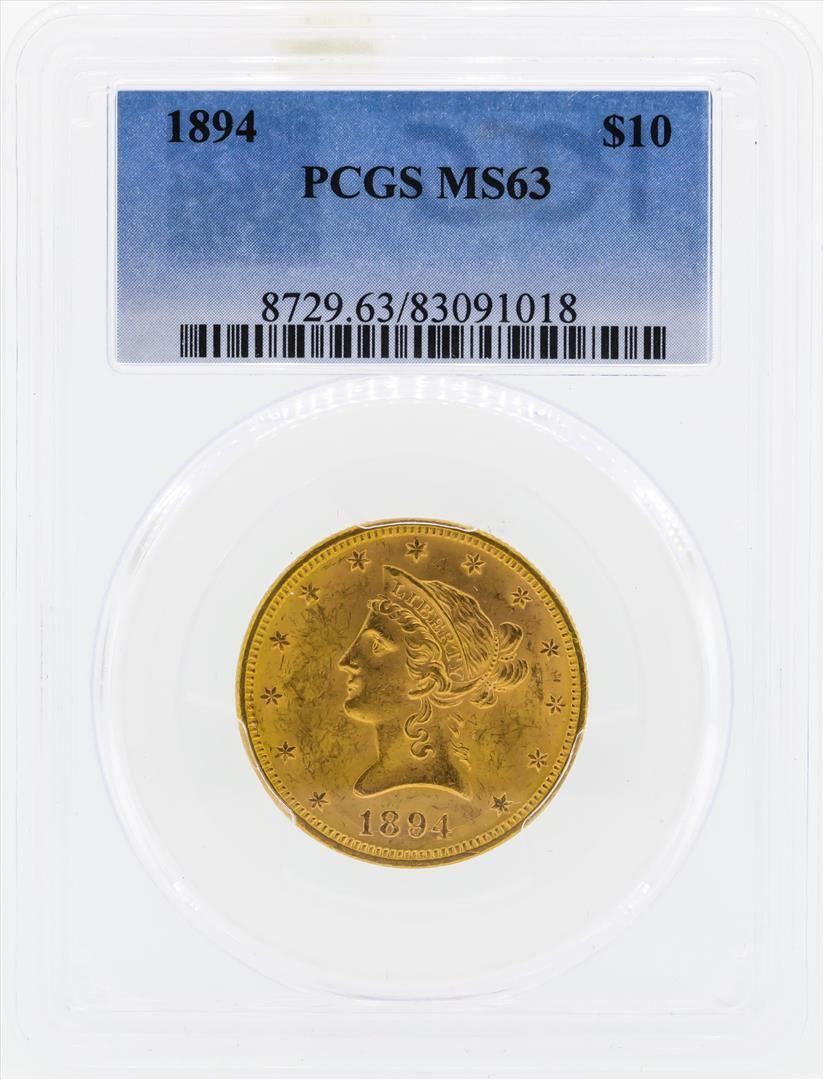 One 1894 $10 Liberty Head Eagle Gold Coin PCGS MS63. PCGS Graded.