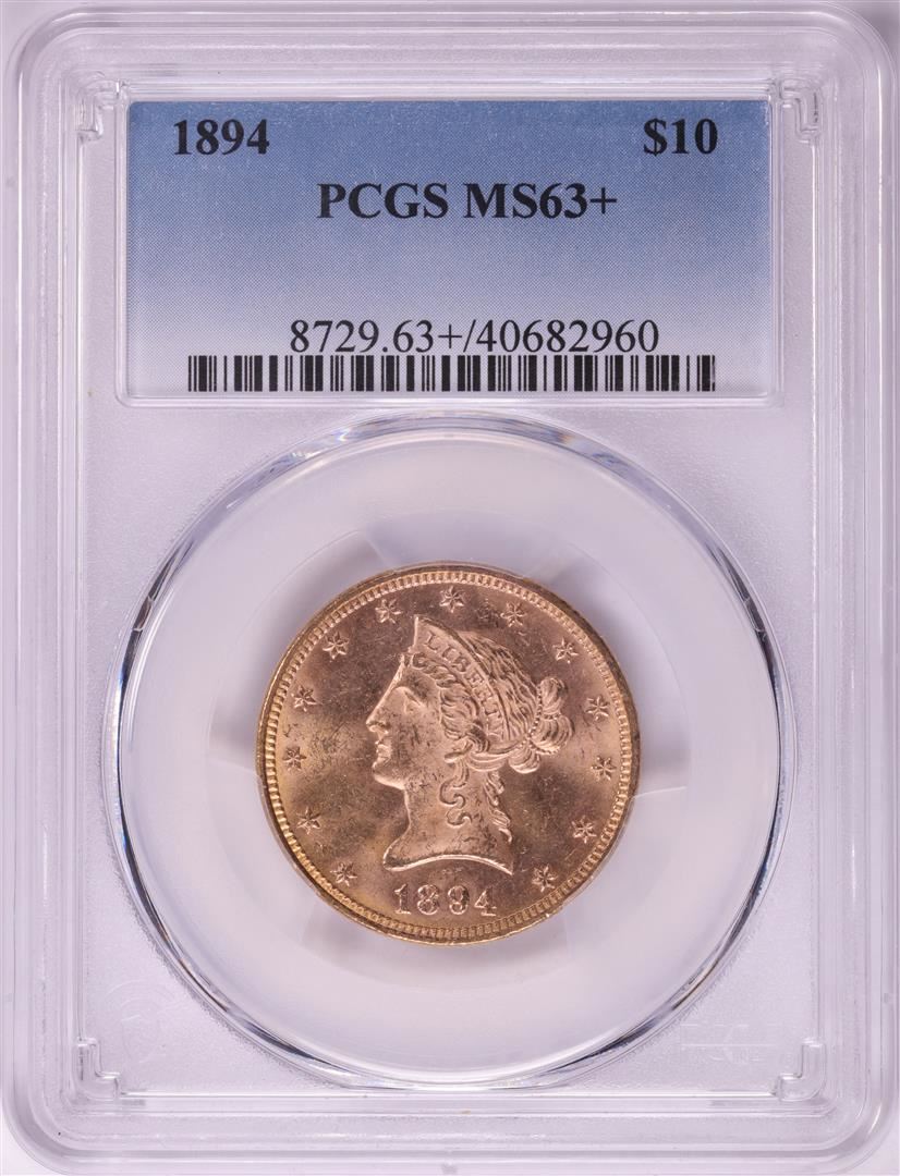 One 1894 $10 Liberty Head Eagle Gold Coin PCGS MS63+. PCGS Graded.
