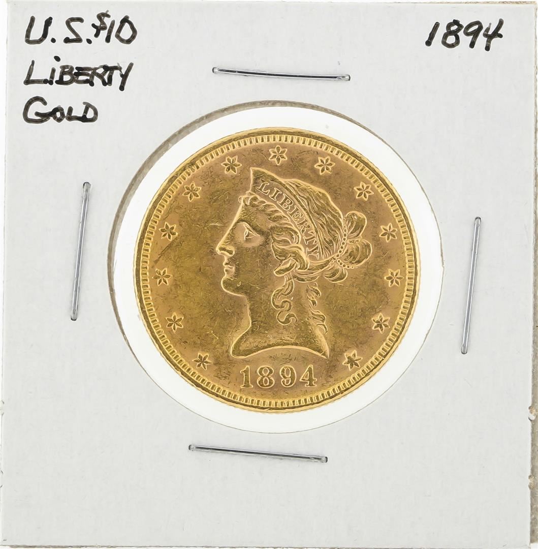 One 1894 $10 Liberty Head Eagle Gold Coin.