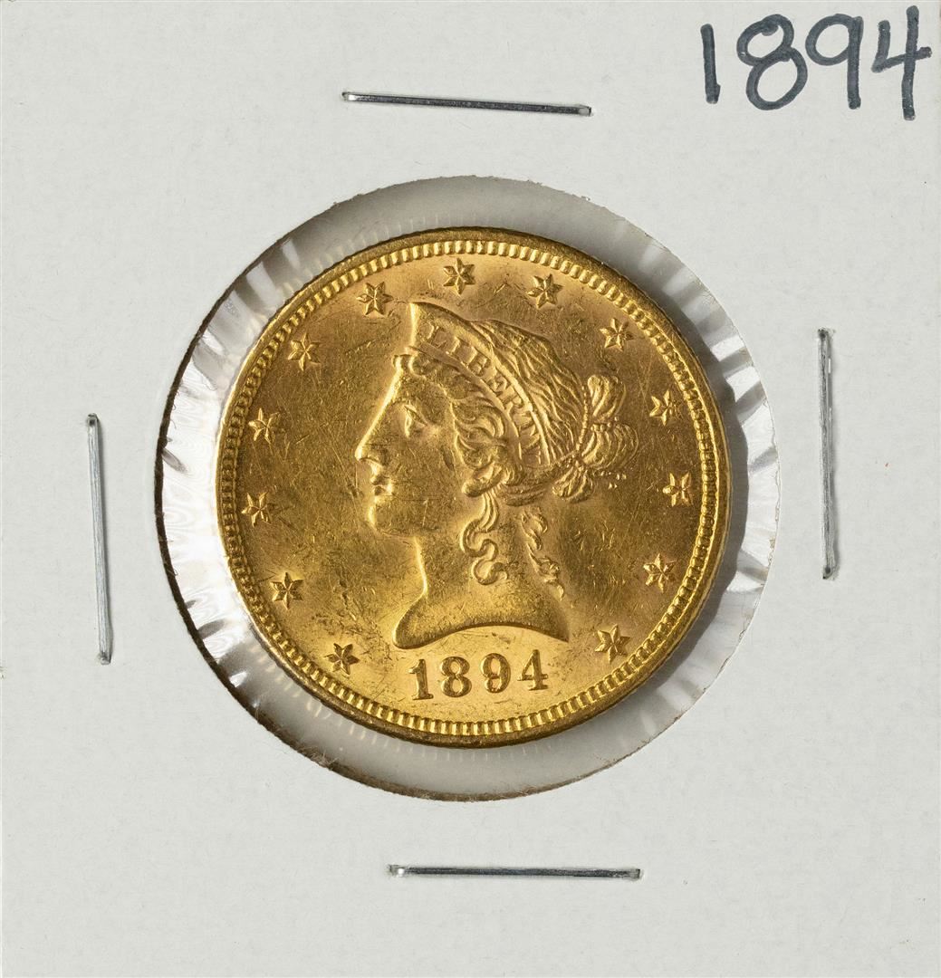 One 1894 $10 Liberty Head Eagle Gold Coin.