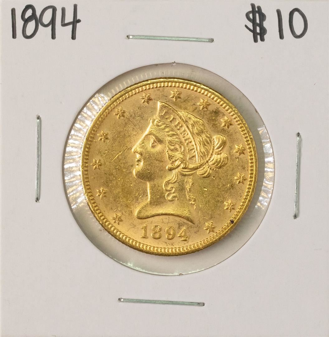 One 1894 $10 Liberty Head Eagle Gold Coin.