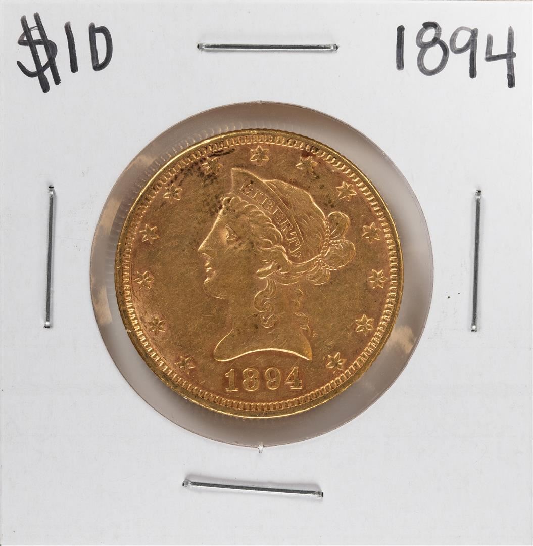 One 1894 $10 Liberty Head Eagle Gold Coin.