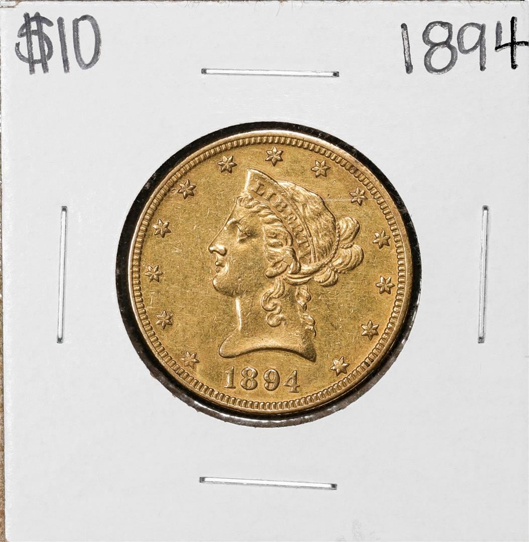 One 1894 $10 Liberty Head Eagle Gold Coin.