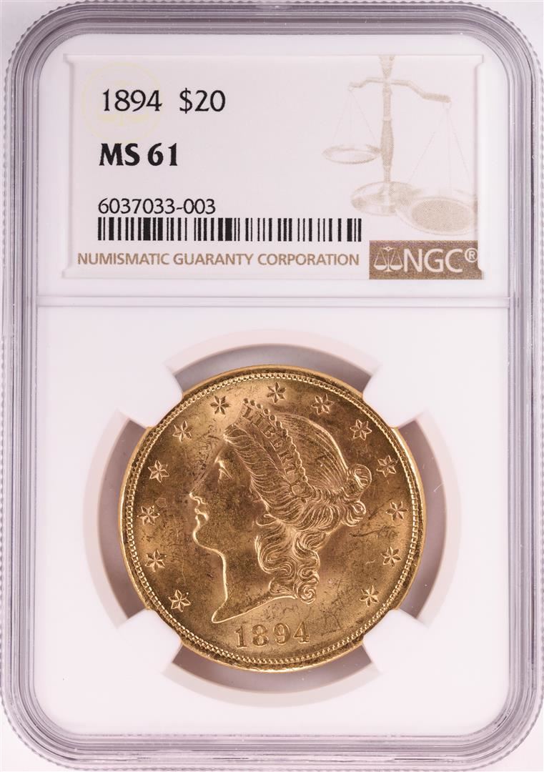 One 1894 $20 Liberty Head Double Eagle Gold Coin NGC MS61. NGC Certified.