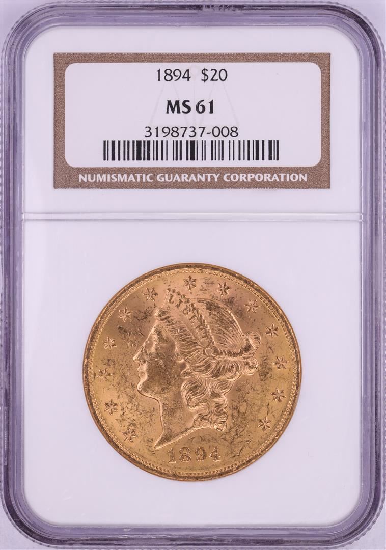 One 1894 $20 Liberty Head Double Eagle Gold Coin NGC MS61. NGC Certified.