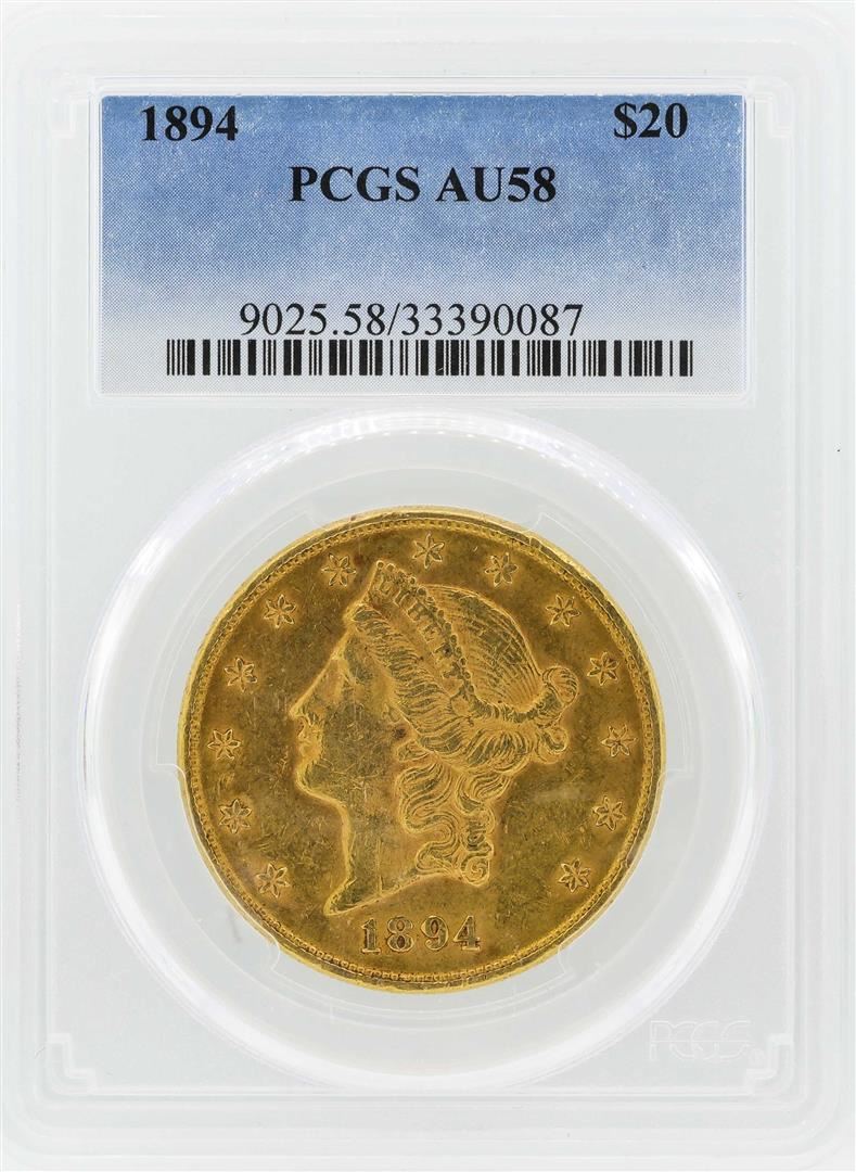 One 1894 $20 Liberty Head Double Eagle Gold Coin PCGS AU58. PCGS Graded.
