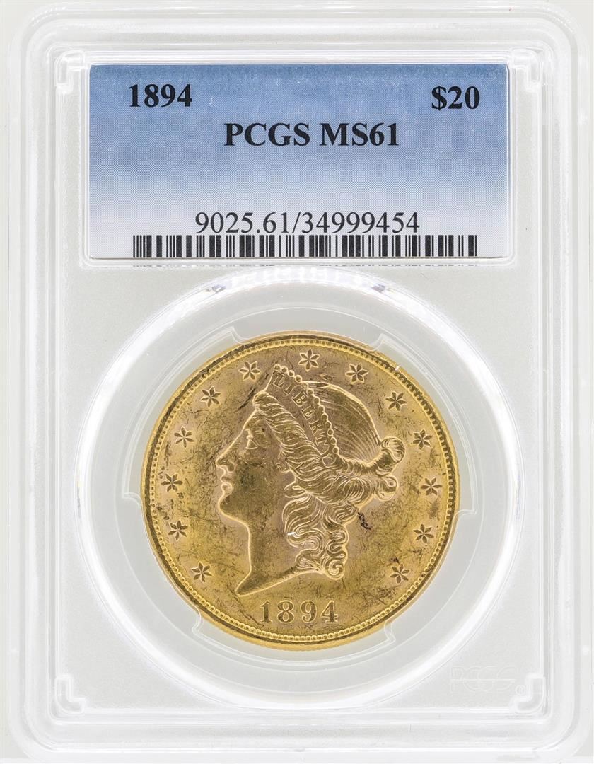 One 1894 $20 Liberty Head Double Eagle Gold Coin PCGS MS61. PCGS Graded.
