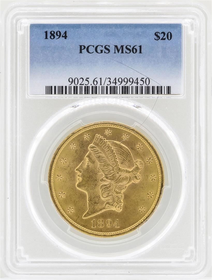 One 1894 $20 Liberty Head Double Eagle Gold Coin PCGS MS61. PCGS Graded.