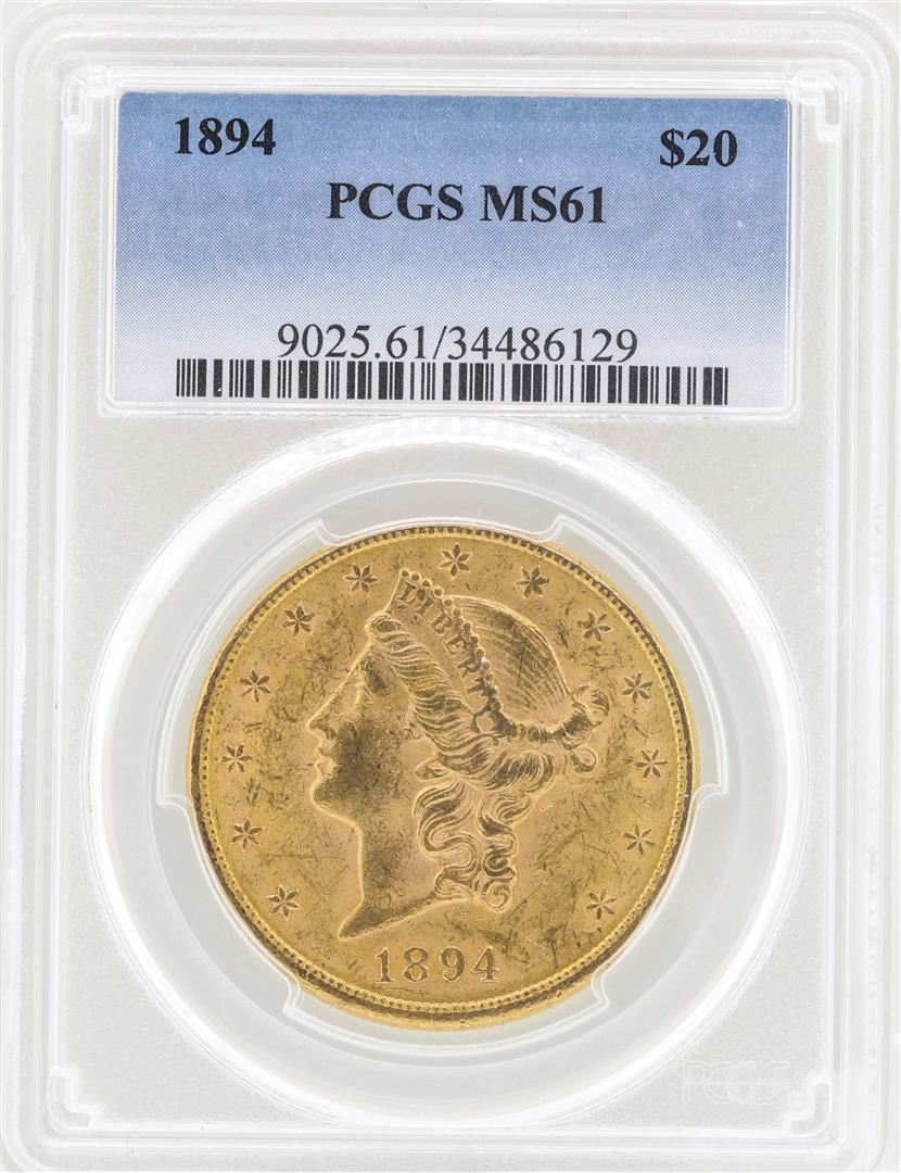 One 1894 $20 Liberty Head Double Eagle Gold Coin PCGS MS61. PCGS Graded.