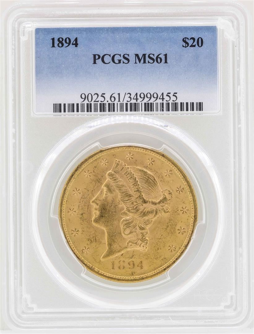 One 1894 $20 Liberty Head Double Eagle Gold Coin PCGS MS61. PCGS Graded.