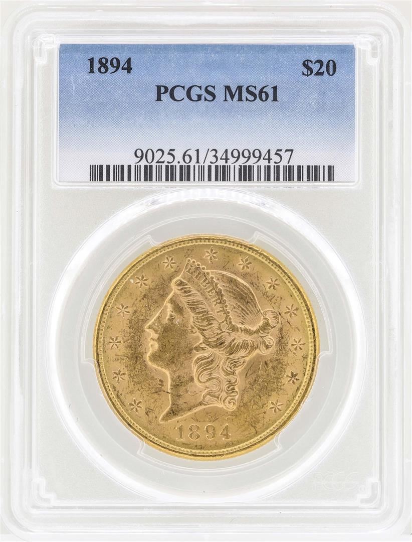 One 1894 $20 Liberty Head Double Eagle Gold Coin PCGS MS61. PCGS Graded.