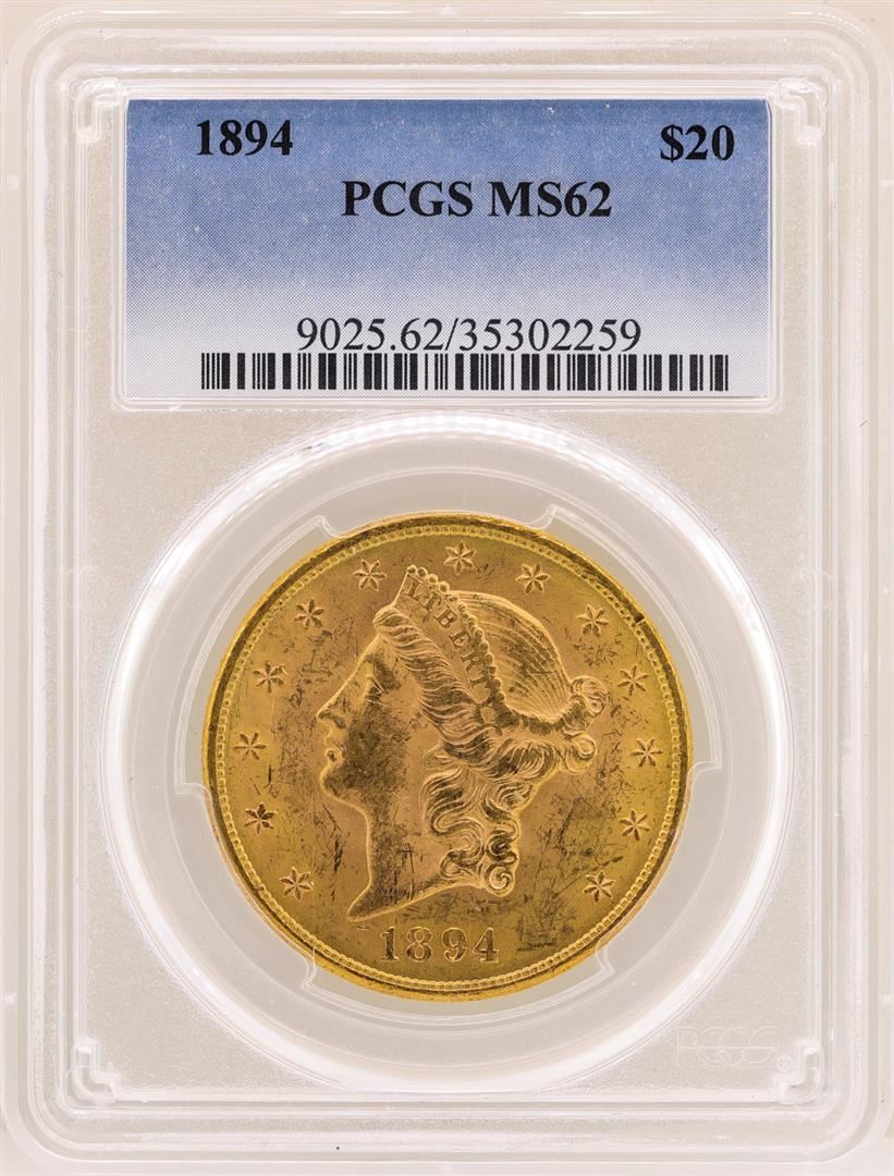 One 1894 $20 Liberty Head Double Eagle Gold Coin PCGS MS62. PCGS Graded.