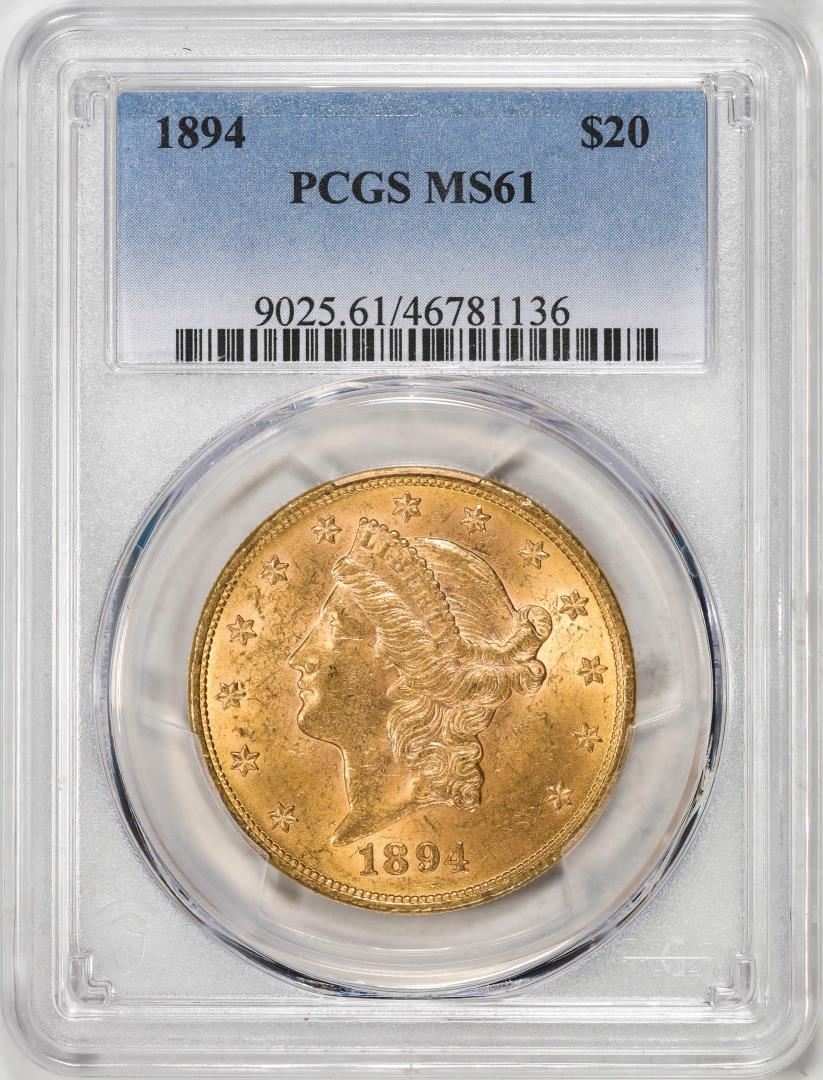 One 1894 $20 Liberty Head Eagle Gold Coin PCGS MS61. PCGS Graded.
