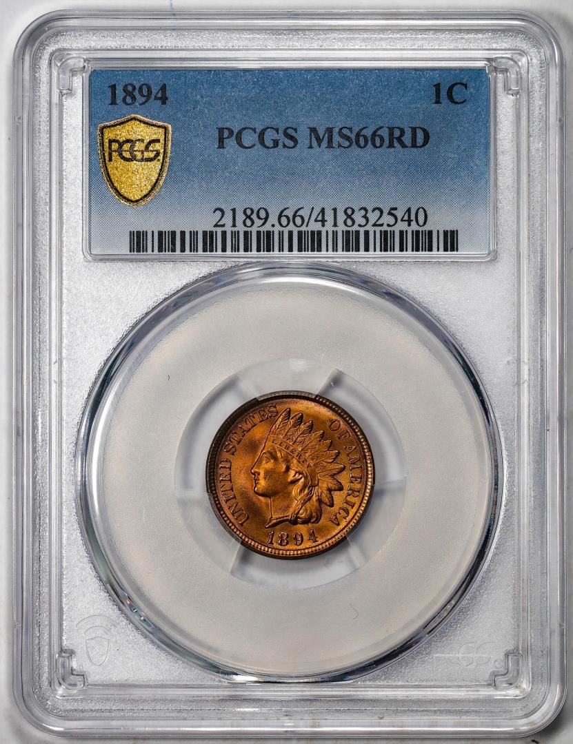 One 1894 Indian Cent Coin PCGS MS66RD. PCGS Graded.