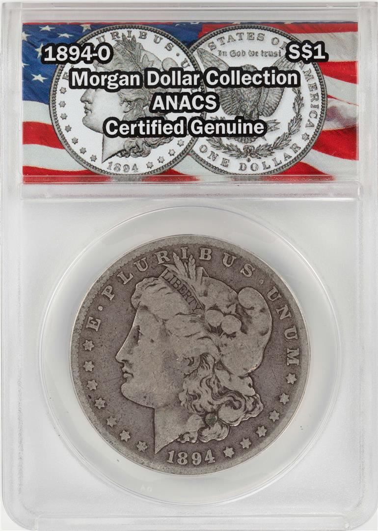 One 1894-O $1 Morgan Silver Dollar Coin ANACS Certified Genuine. ANACS Certified.