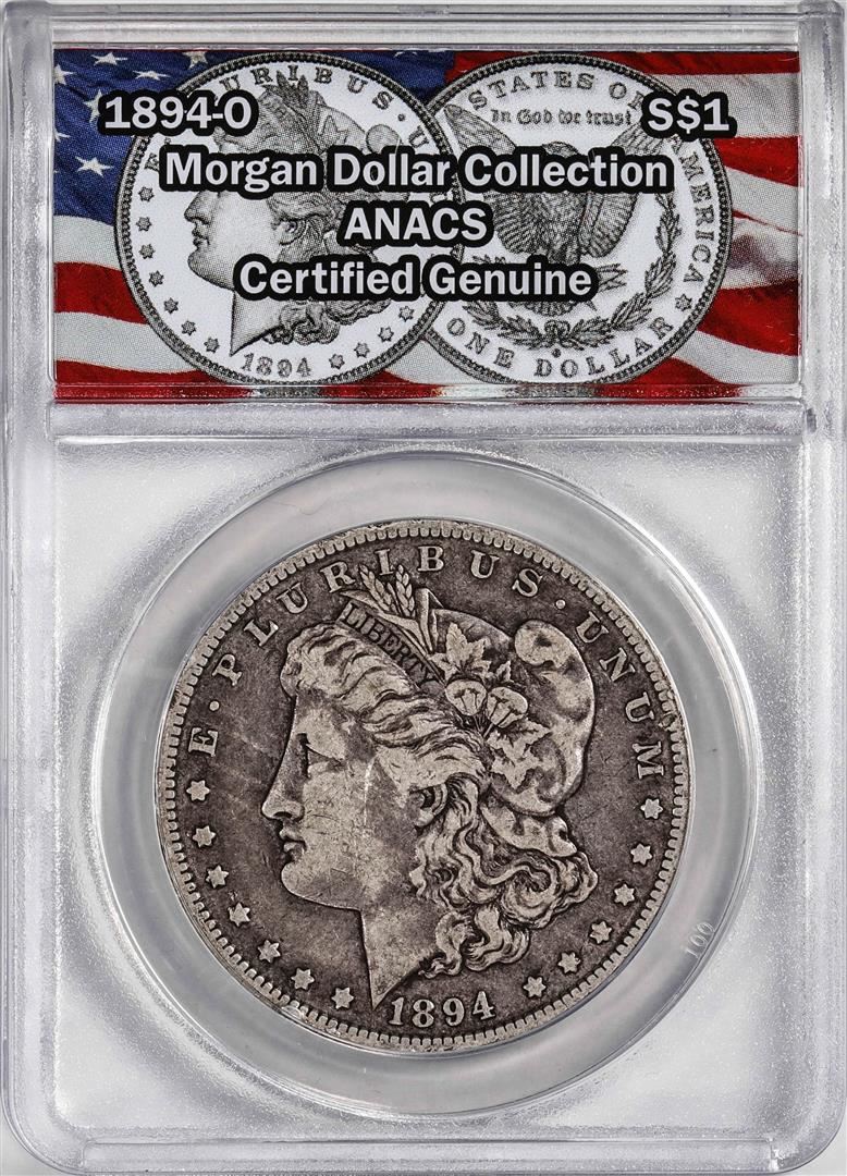 One 1894-O $1 Morgan Silver Dollar Coin ANACS Genuine. ANACS Certified.