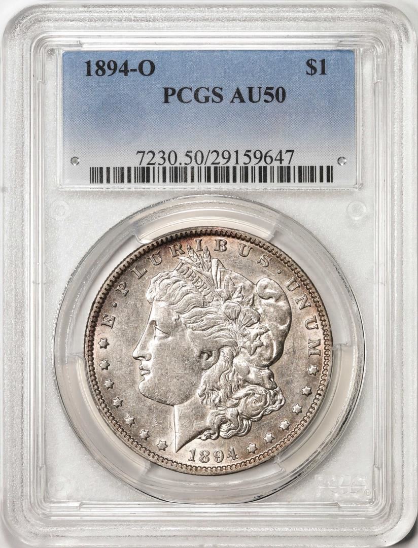 One 1894-O $1 Morgan Silver Dollar Coin PCGS AU50. PCGS Graded.