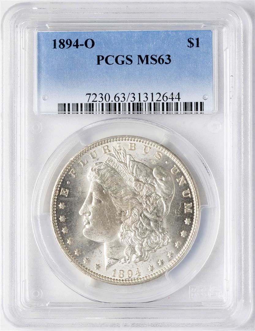 One 1894-O $1 Morgan Silver Dollar Coin PCGS MS63. PCGS Graded.