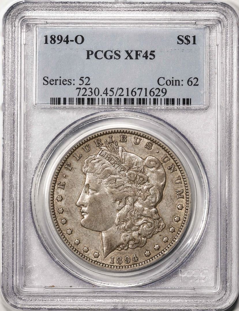 One 1894-O $1 Morgan Silver Dollar Coin PCGS XF45. PCGS Graded.