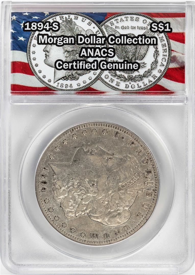 One 1894-S $1 Morgan Silver Dollar Coin ANACS Certified Genuine. ANACS Certified.