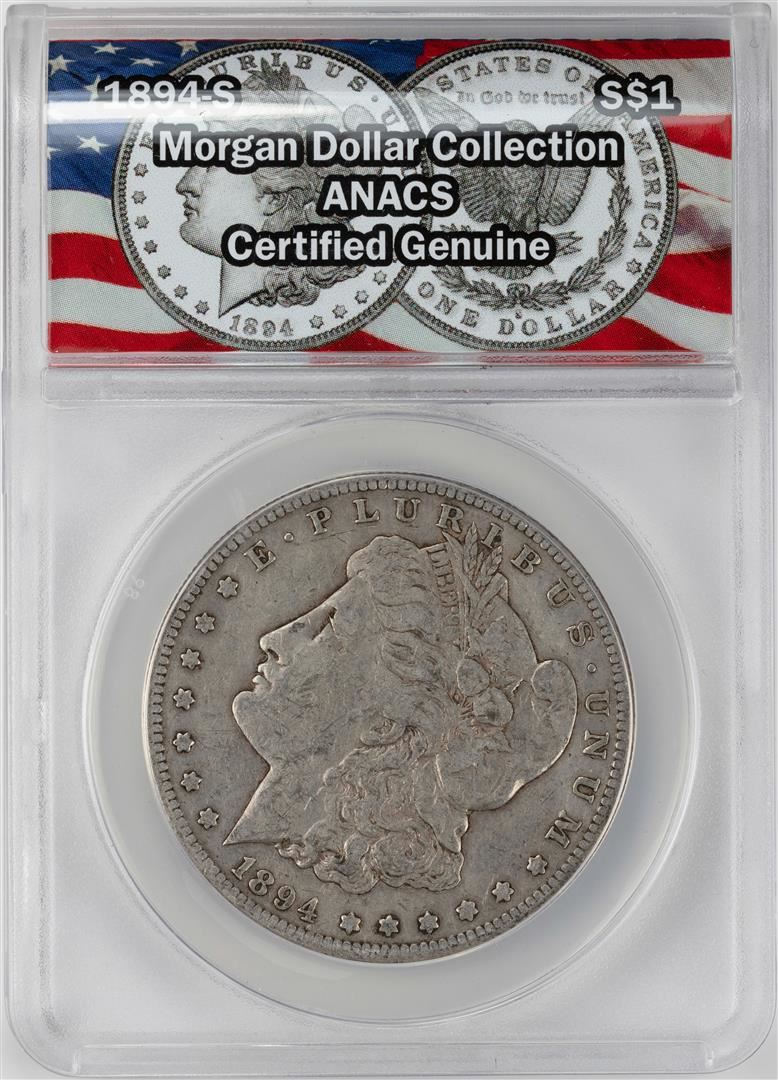 One 1894-S $1 Morgan Silver Dollar Coin ANACS Genuine. ANACS Certified.