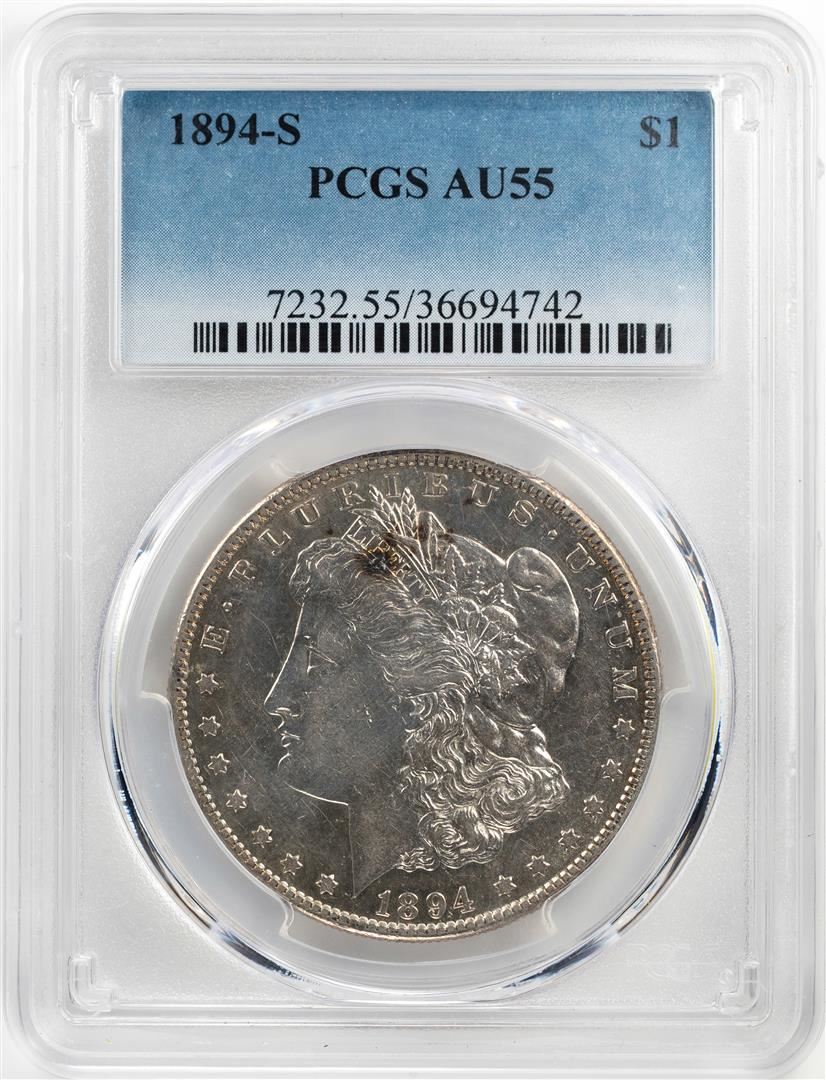 One 1894-S $1 Morgan Silver Dollar Coin PCGS AU55. PCGS Graded.