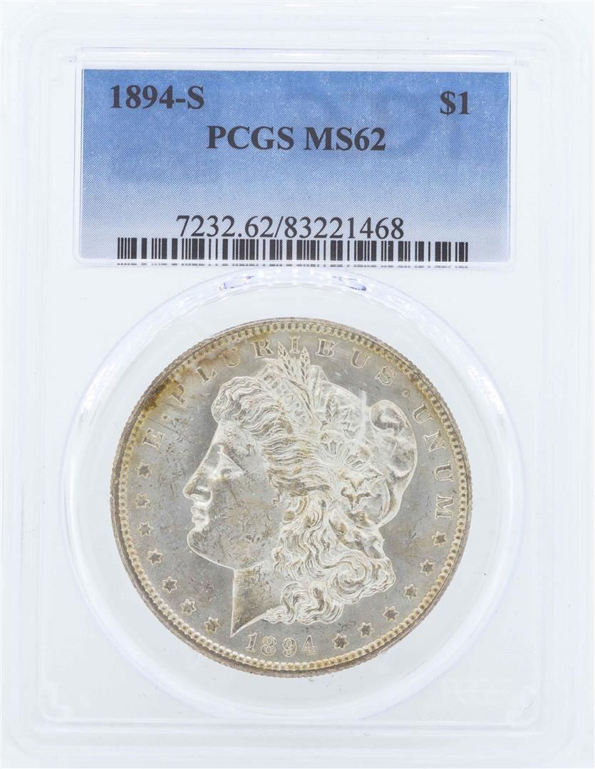 One 1894-S $1 Morgan Silver Dollar Coin PCGS MS62. PCGS Graded.