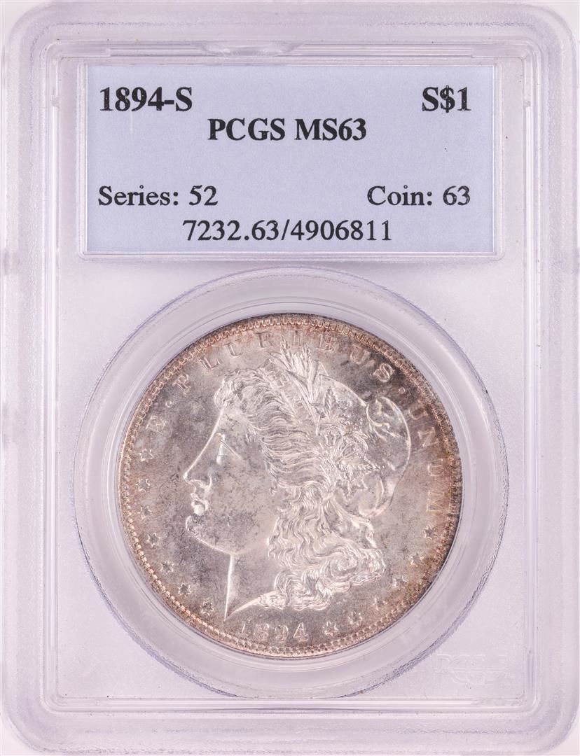 One 1894-S $1 Morgan Silver Dollar Coin PCGS MS63. PCGS Graded.