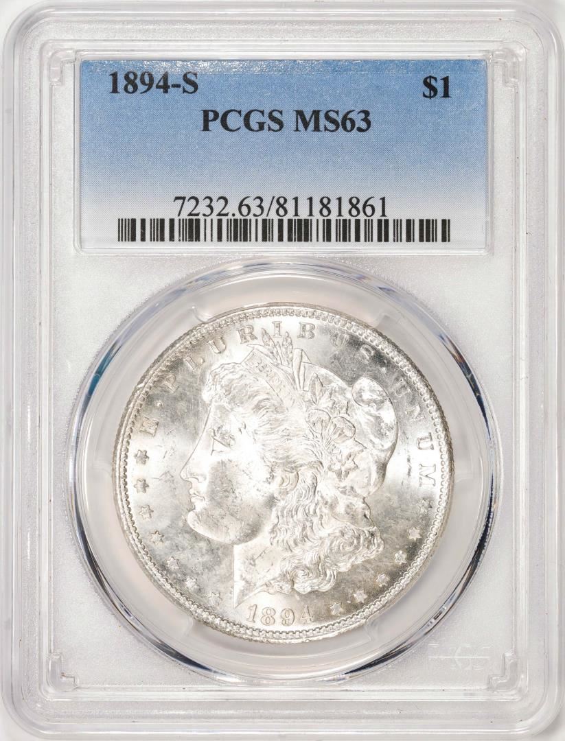 One 1894-S $1 Morgan Silver Dollar Coin PCGS MS63. PCGS Graded.
