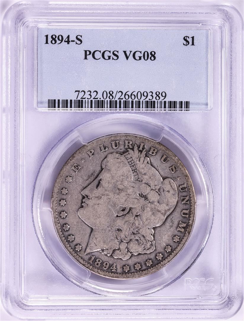 One 1894-S $1 Morgan Silver Dollar Coin PCGS VG08. PCGS Graded.