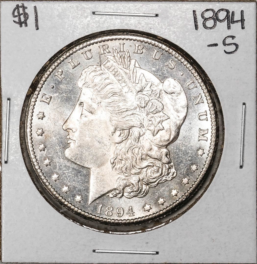 One 1894-S $1 Morgan Silver Dollar Coin.