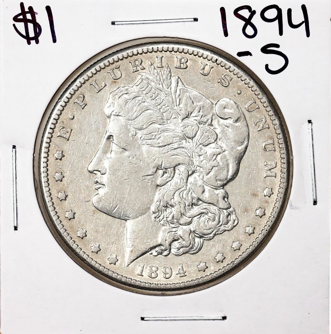 One 1894-S $1 Morgan Silver Dollar Coin.